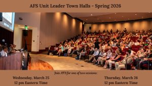 AFS Unit Leaders joined the AFS Officers and Executive Director for our spring 2026 Unit Leader Town Halls! The recordings for both sessions are below: